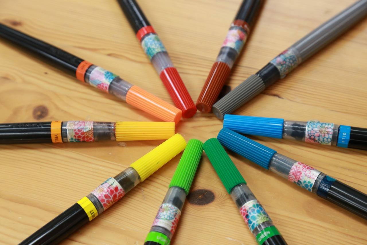 筆ペンや色のついた筆ペンを使用して筆の質感を活かした柔らかみのあるポップで可愛らしい、心温まる書を描く、それが当教室で得られる筆文字です。